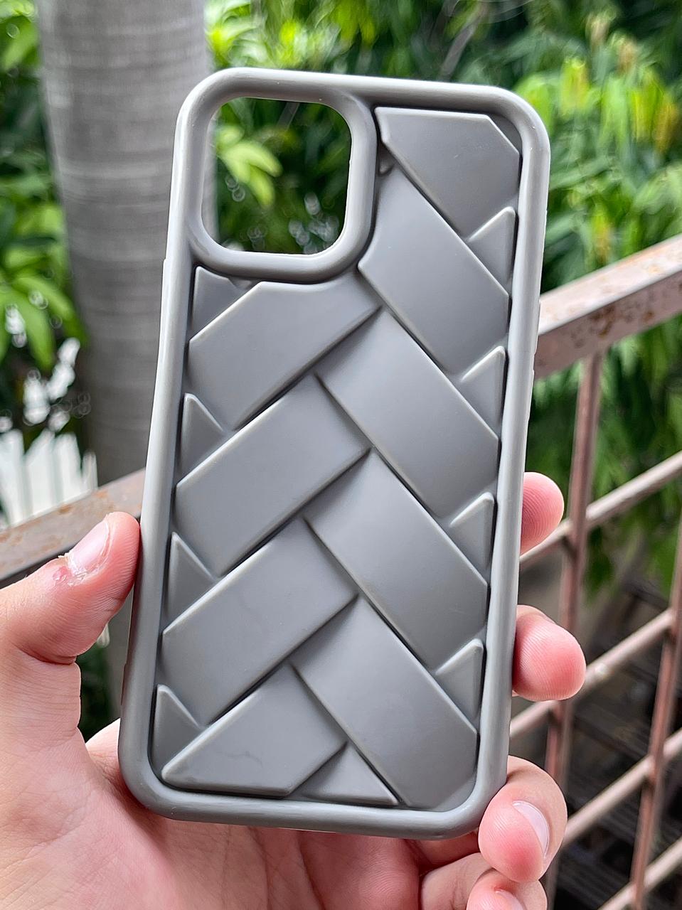 iPhone "12/12 Pro" Premium Silicone "Woven-Bamboo" Case - Gray