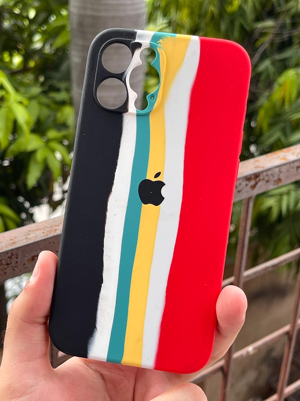 iPhone "12 Pro Max" Silicone "Rainbow" Case - Multi Black