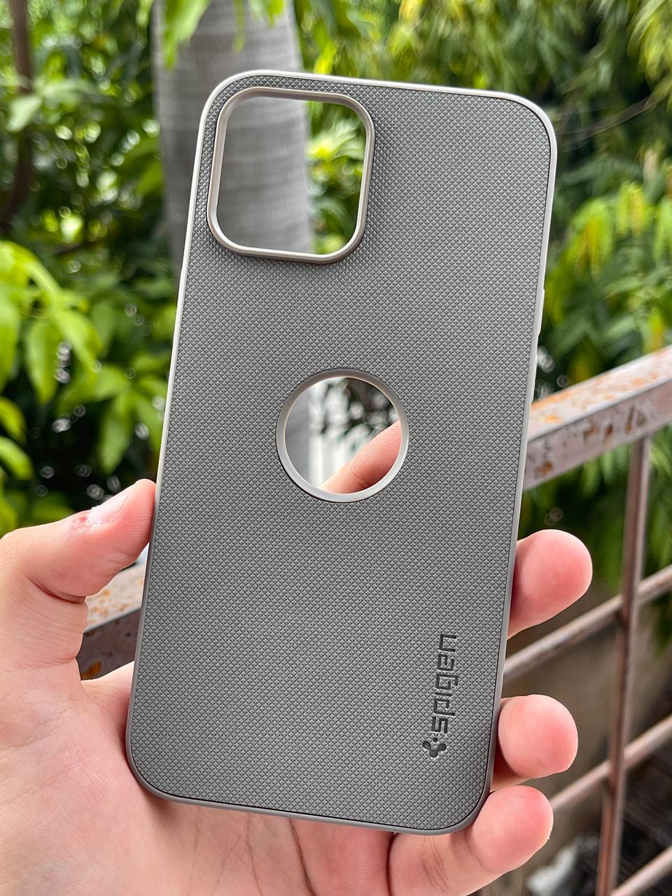 iPhone "12 Pro Max" Spigen Rugged Texture "LOGO-CUT" Case - Gray