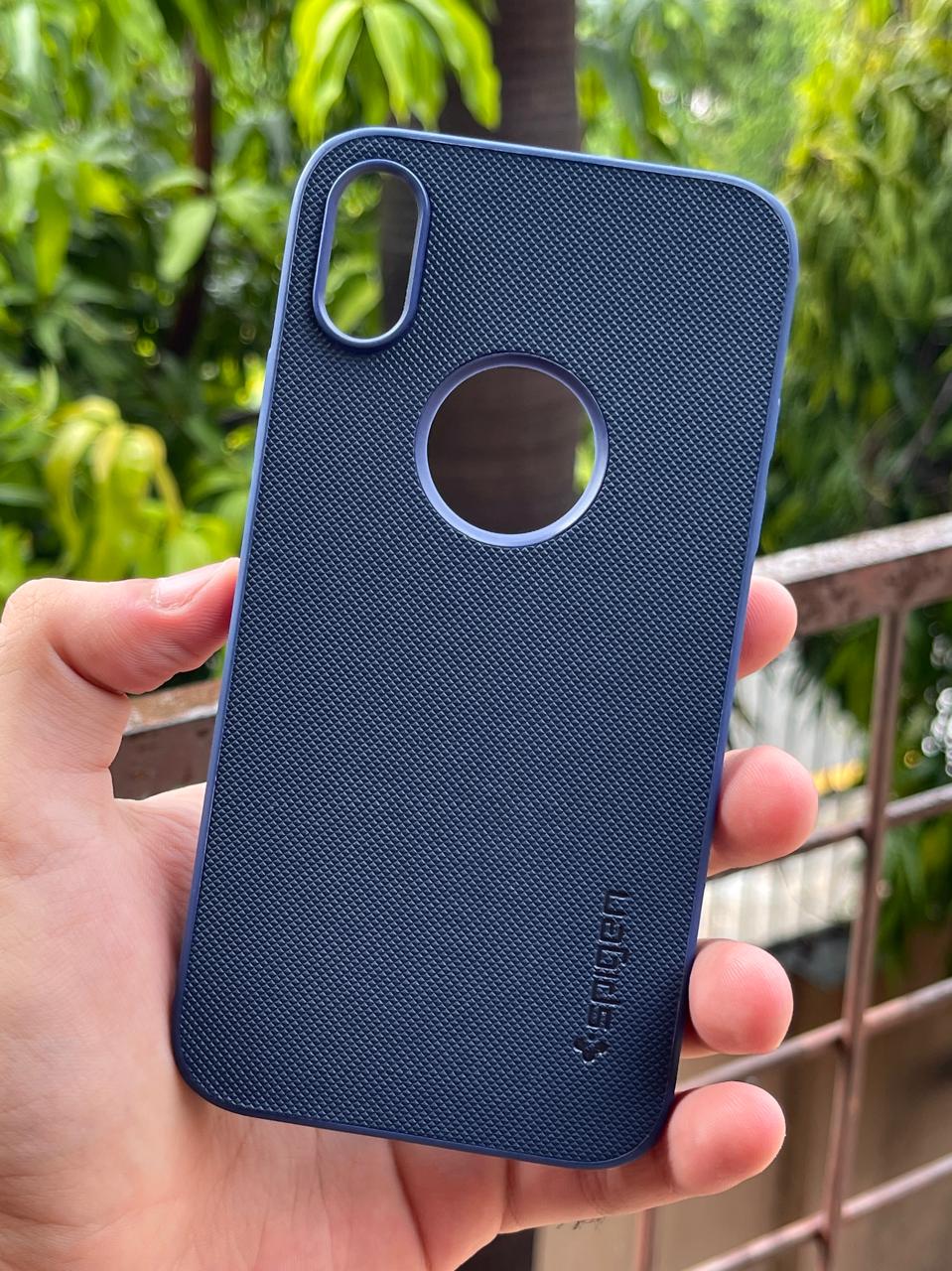 iPhone "XR" Spigen Rugged Texture "LOGO-CUT" Case - Blue
