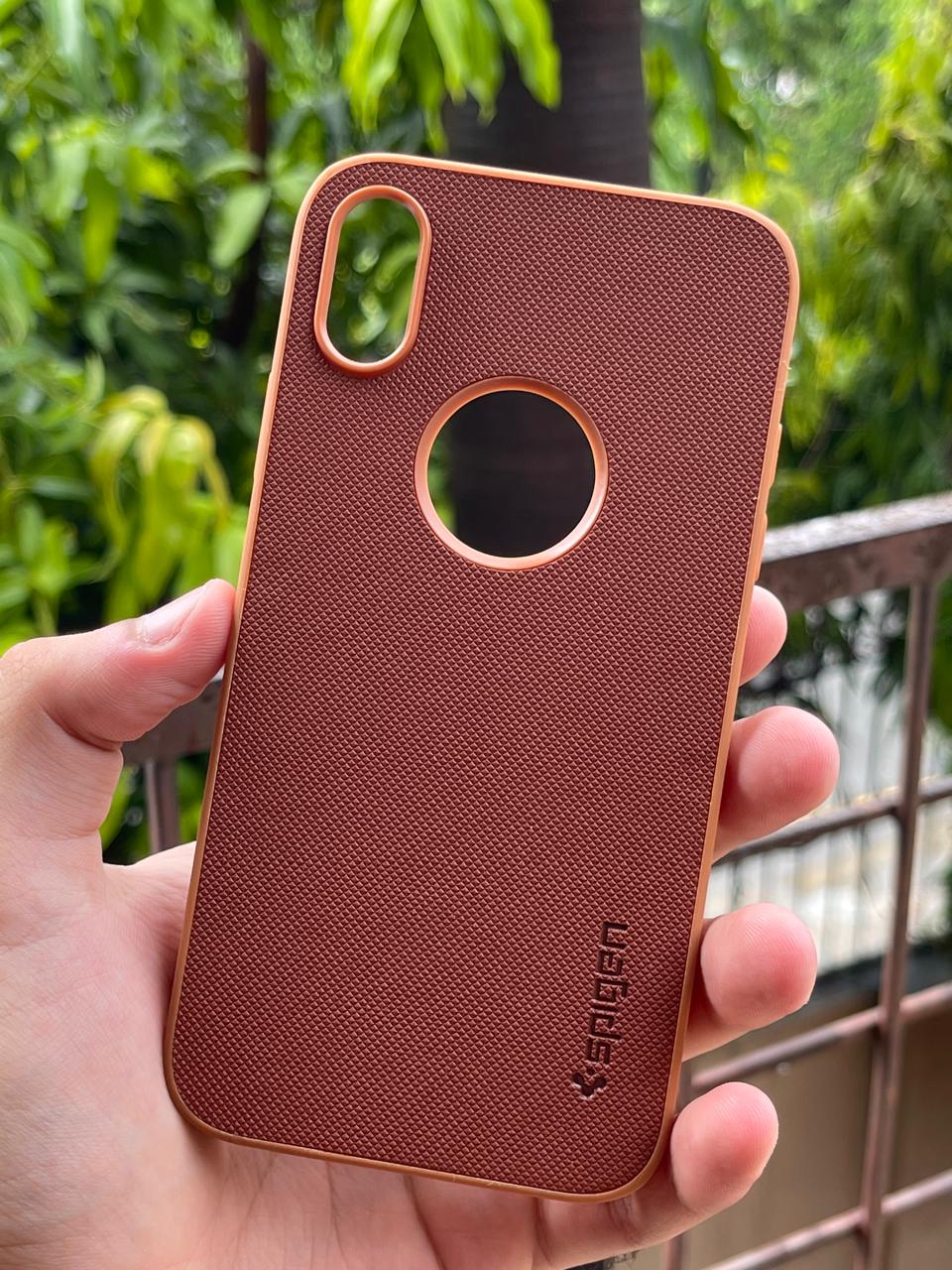 iPhone "XR" Spigen Rugged Texture "LOGO-CUT" Case - Brown