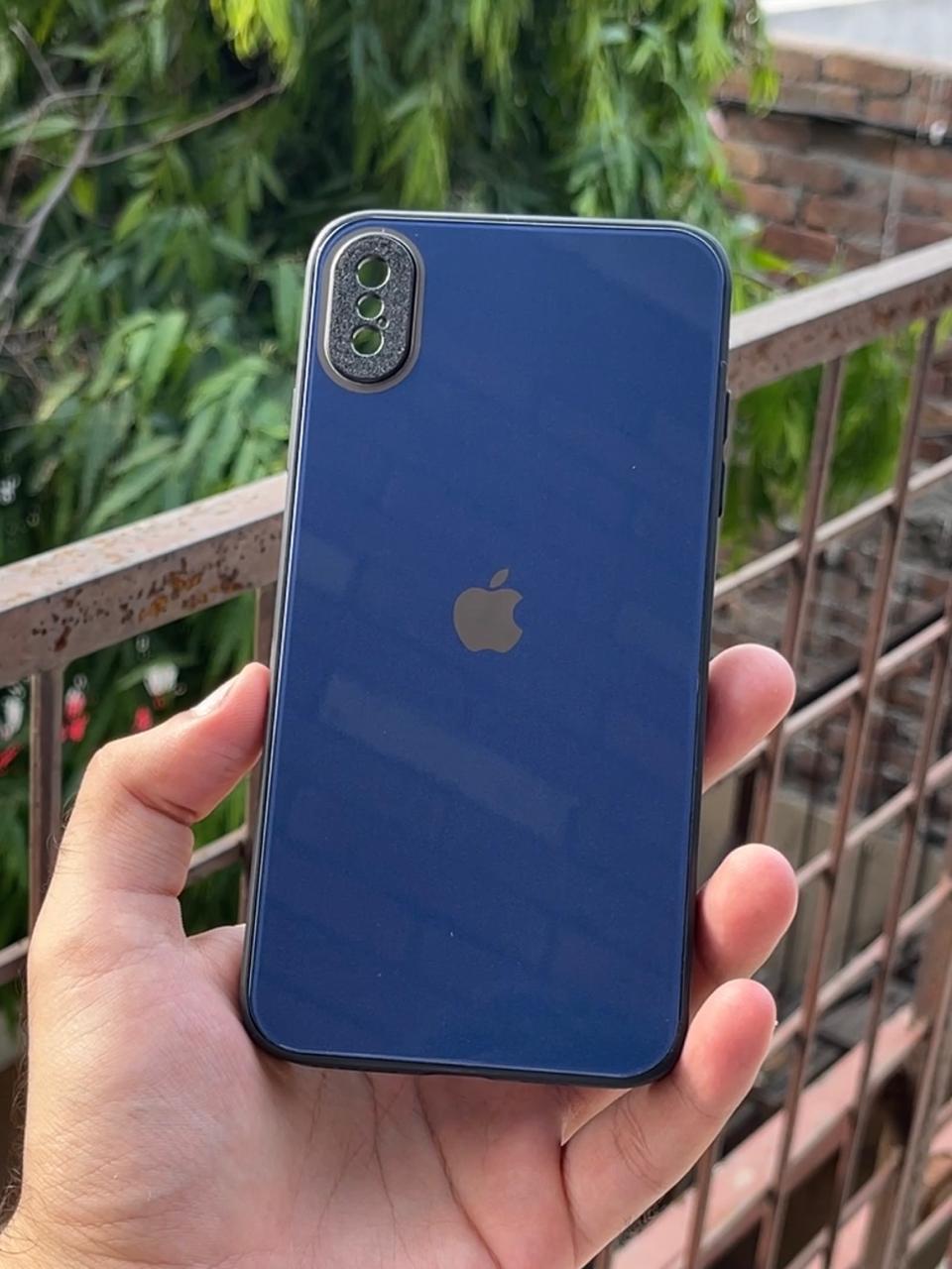 iPhone "XS Max" Tempered Glass "Chrome" Case - Dark Blue