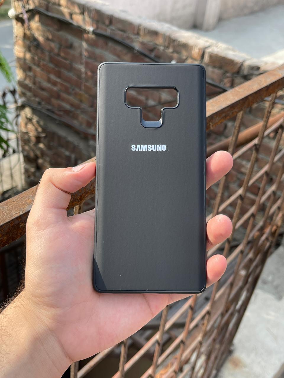 Samsung Galaxy "Note 9" Leather Texture Case "Chrome Logo" - Black