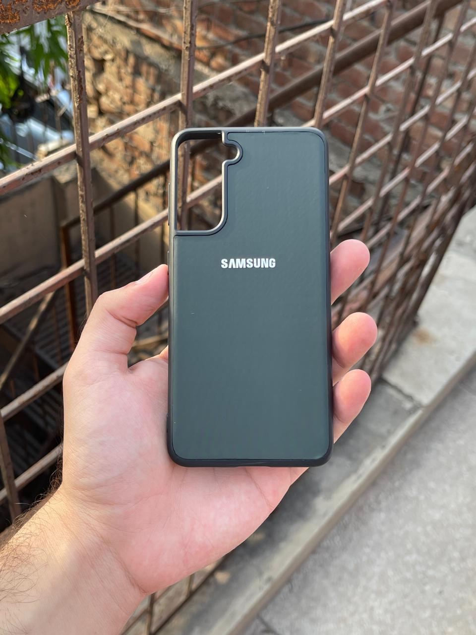 Samsung Galaxy "S21" Leather Texture Case "Chrome Logo" - Green
