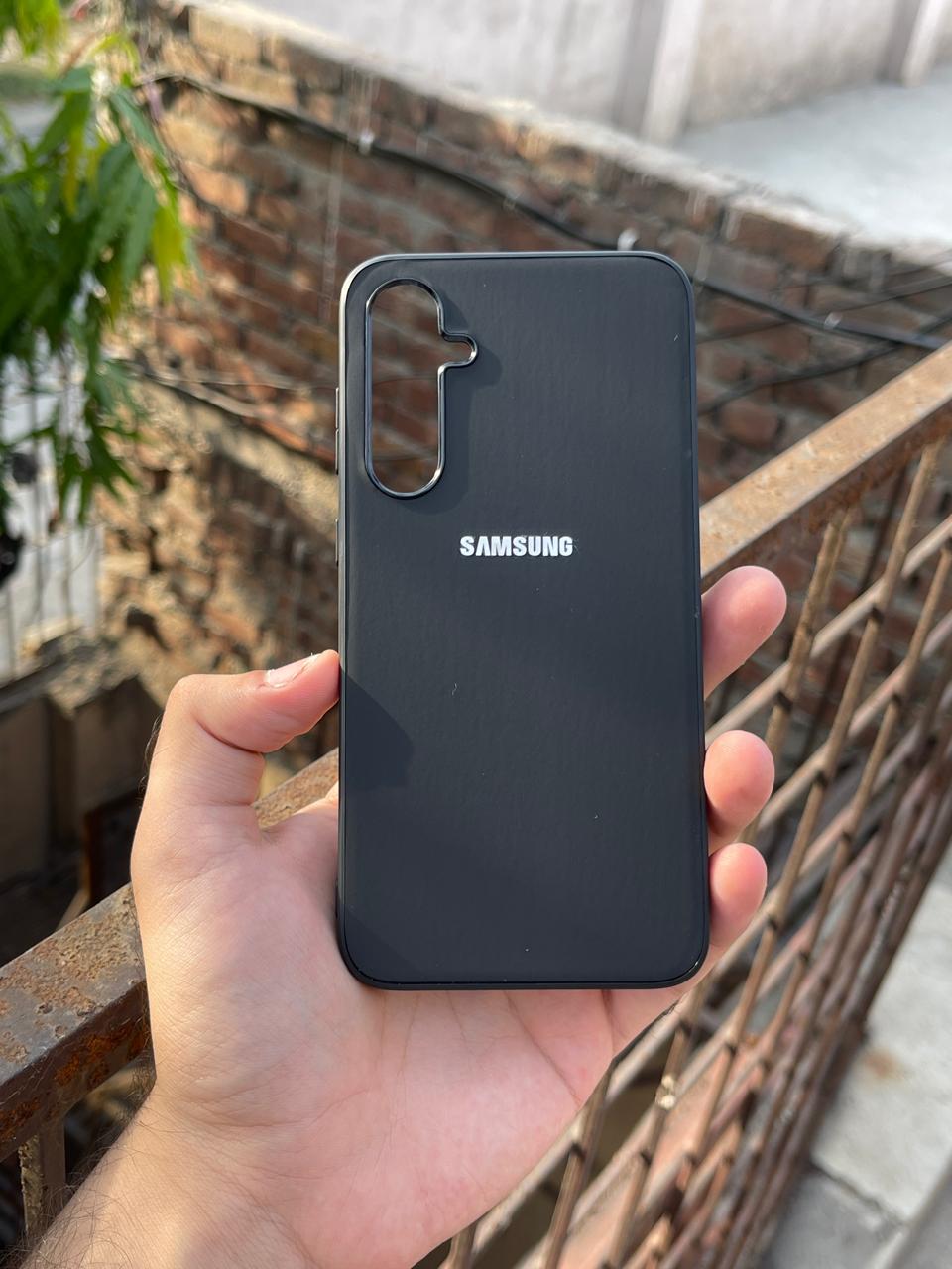 Samsung Galaxy "S23 FE" Leather Texture Case "Chrome Logo" - Black