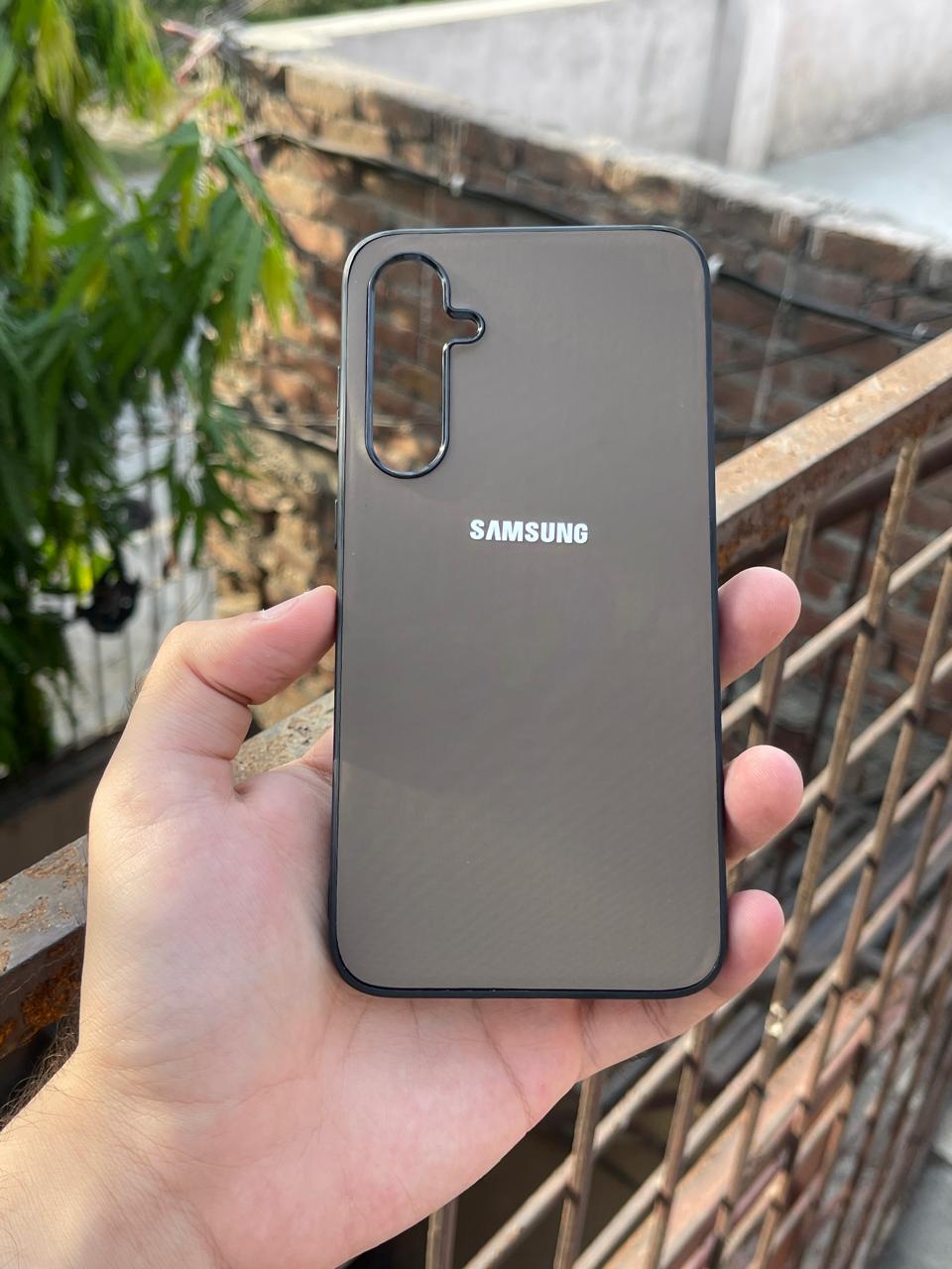 Samsung Galaxy "S23 FE" Leather Texture Case "Chrome Logo" - Brown